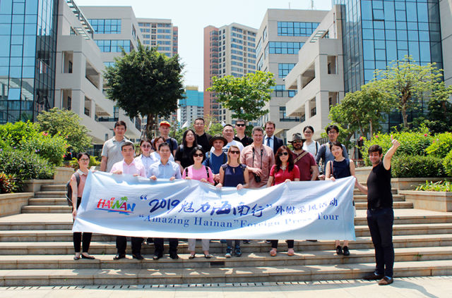 ↑9日中午,“2019魅力海南行”外媒采风团在海南生态软件园合影留念。