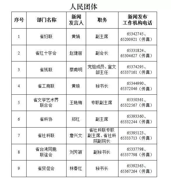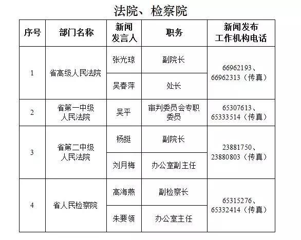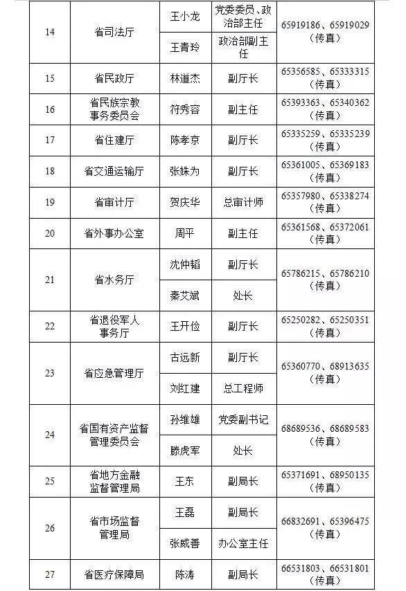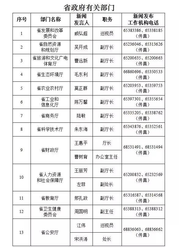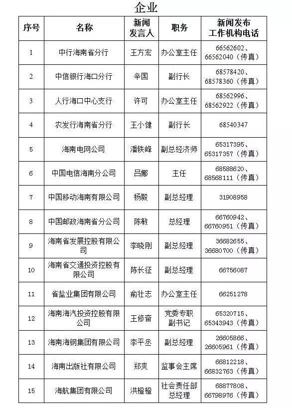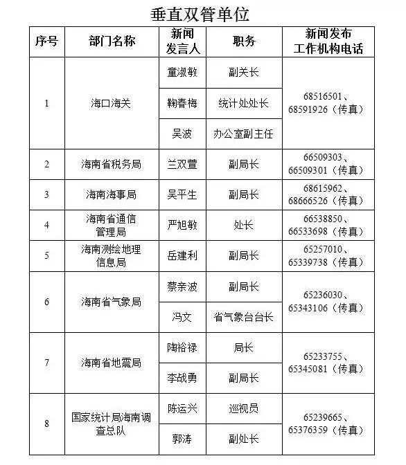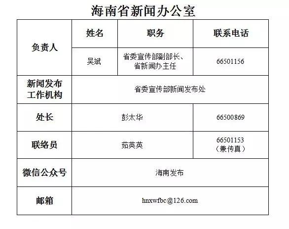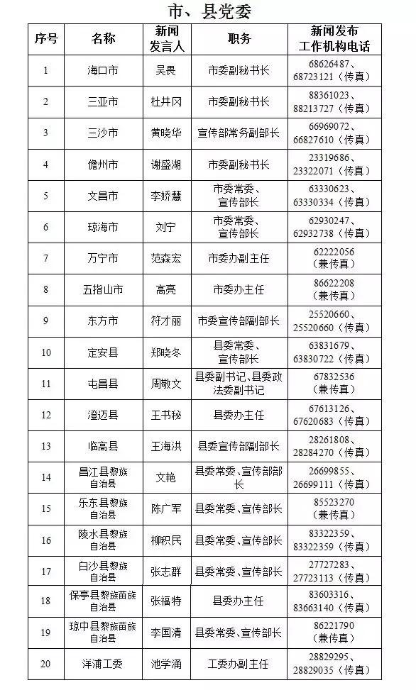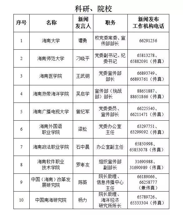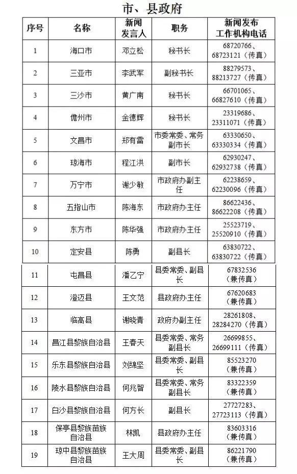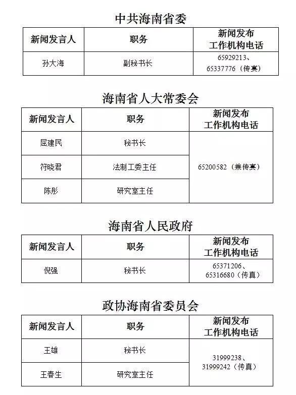 海南省新闻发言人名录及新闻发布工作机构电话