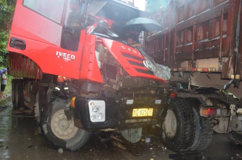 5月31日,屯昌消防指挥中心接到群众报警,位于屯昌县屯城镇往中建农场方向8公里处有两辆货车相撞,有一名司机被困。