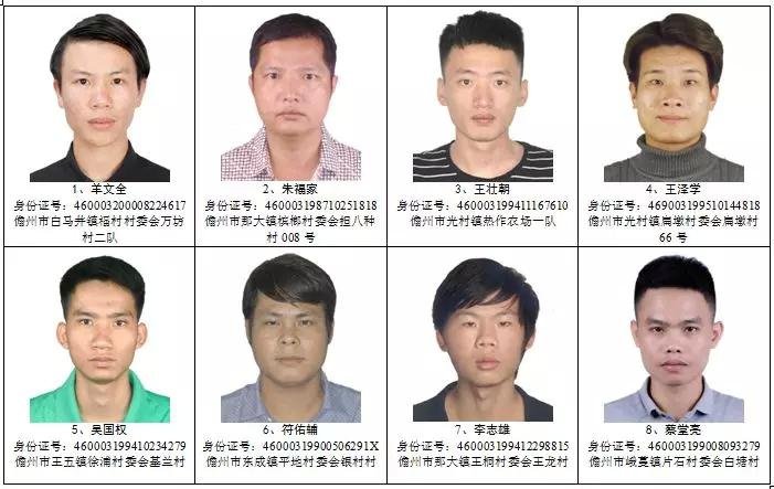 6月25日晚至6月26日,海南省儋州市再次组织上千名警力,开展打击电信诈骗犯罪“蓝天二号”专案集中收网行动,抓获一大批儋州籍电信诈骗犯罪嫌疑人,极大的震慑了犯罪,但仍有部分电信诈骗犯罪嫌疑人在逃。为广泛发动群众,加大在逃人员的缉捕工作力度,特向全社会发布悬赏通告。