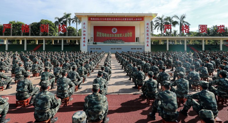6月27日,武警海南省总队2019年度群众性练兵暨首届军人运动会闭幕。雷辙摄