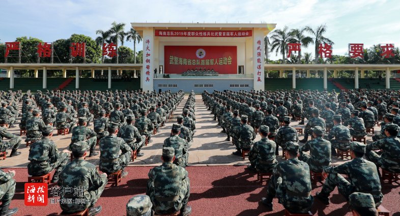 “获得首届军人运动会团体第一名的是机动支队……”6月27日,伴随着嘹亮的军歌声,为期两天的武警海南省总队2019年度群众性练兵比武暨首届军人运动会正式落下帷幕。
