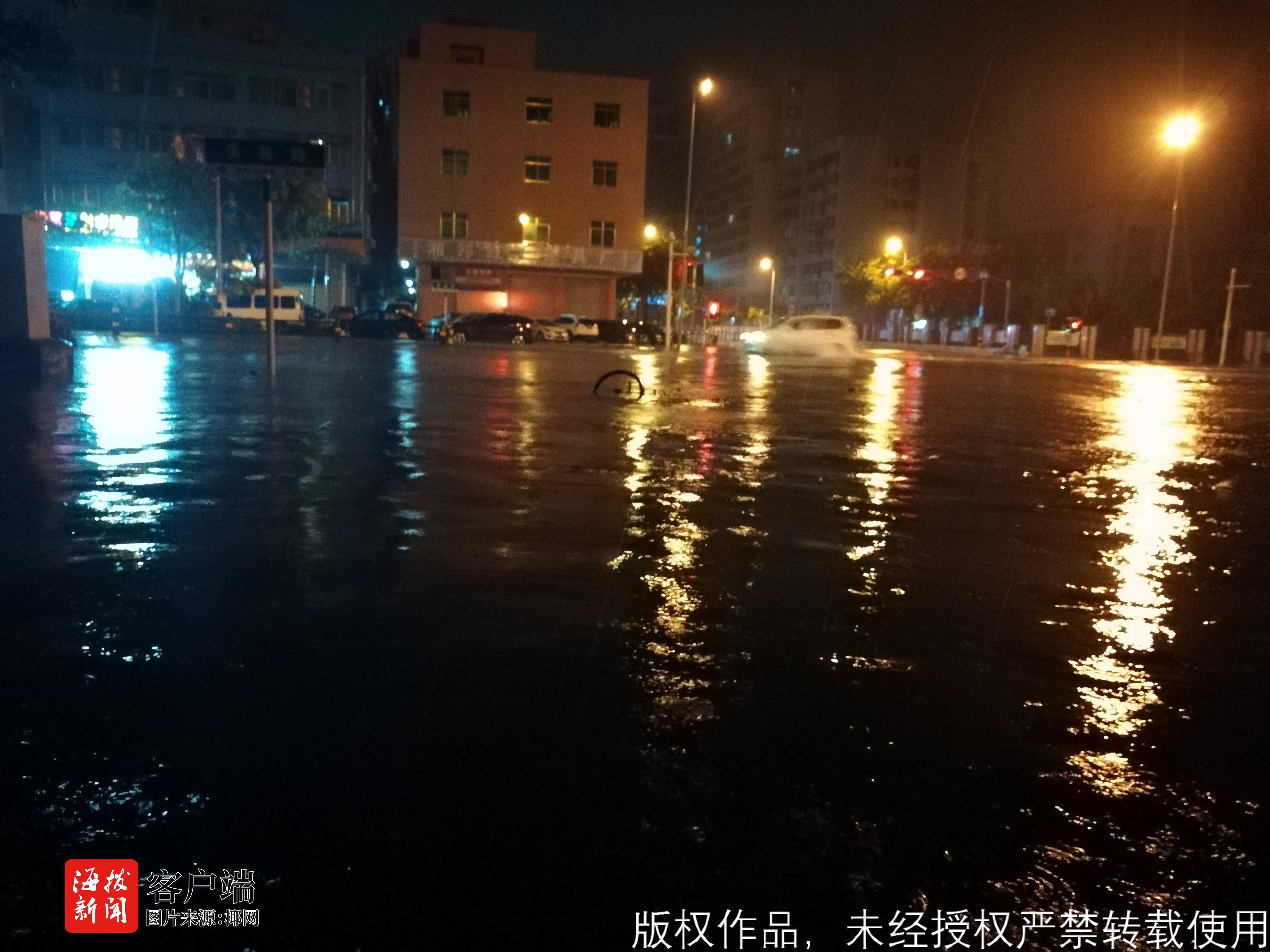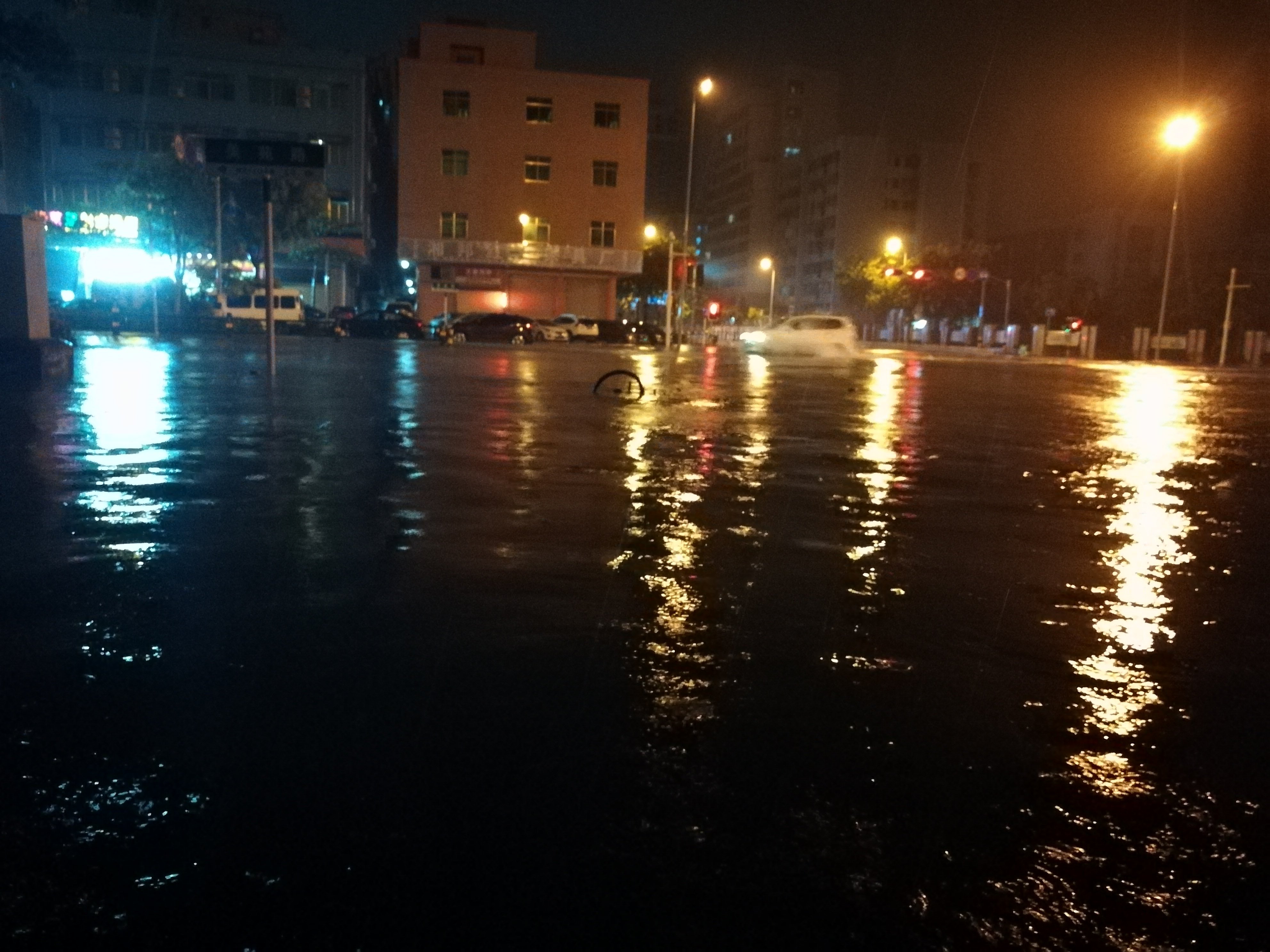 台风影响下道路积水严重。