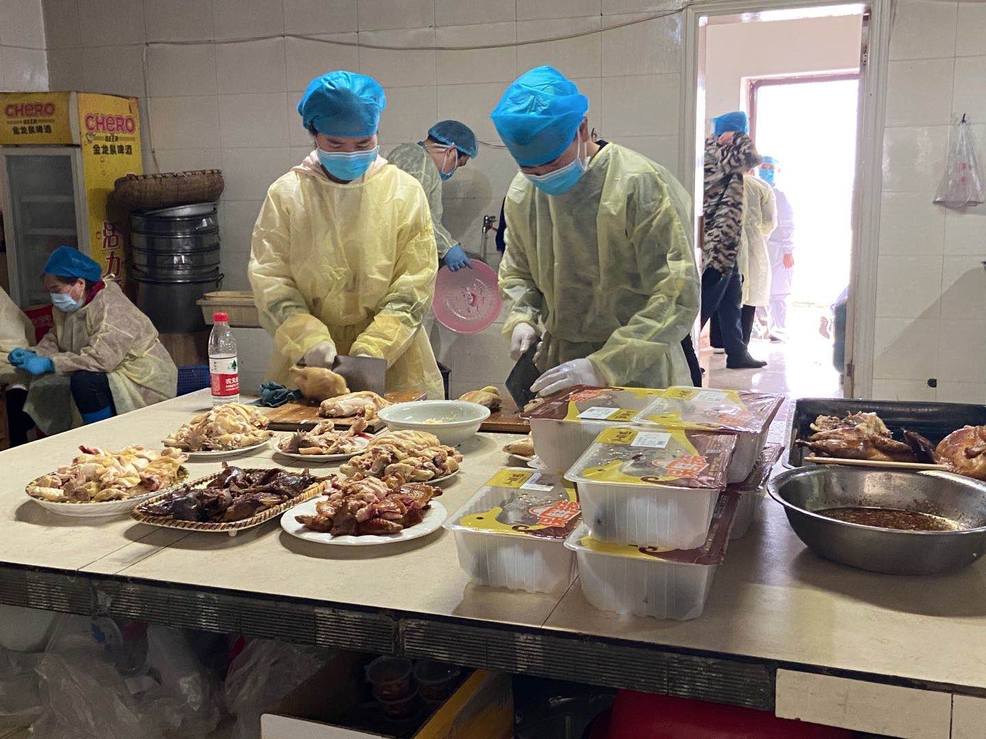 3月8日上午,荆州市胸科医院的爱心厨房里气氛热烈、温馨和谐,海南和荆州两地的医护人员为彼此带来了节日的祝福,海南白斩鸡和荆州小胡鸭的同框,也寓意着大家在共同抗疫的战场上,携手作战,大吉大利!
