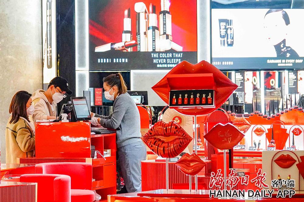 消费者在中免集团海口国际免税城选购商品。海南日报记者陈元才摄