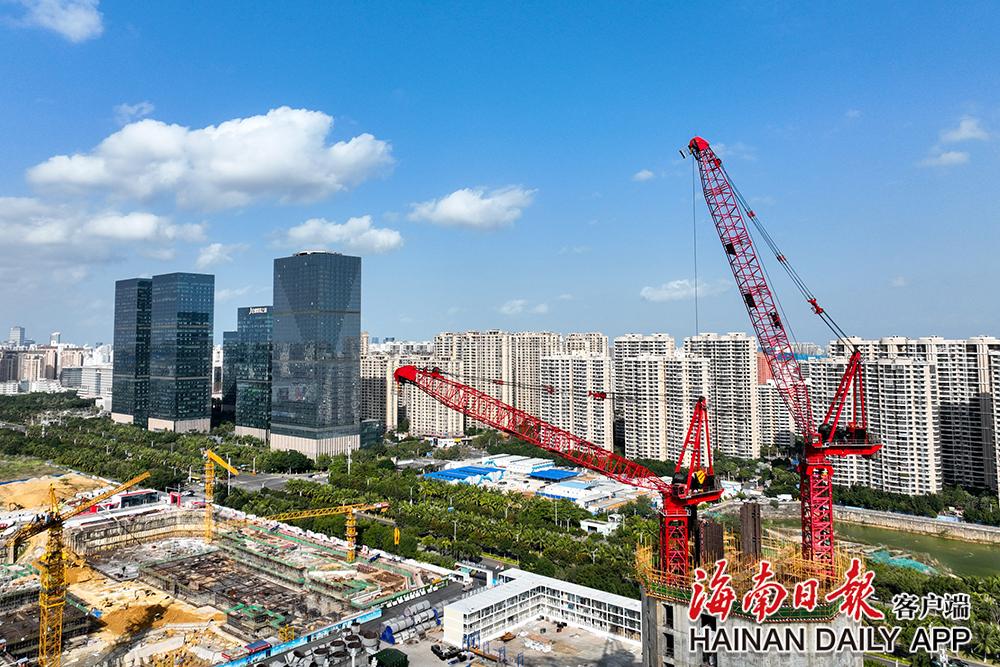 12月26日,在海南中心项目工地,工程人员操作M1280D型号动臂式塔吊施工。海南日报记者武威摄
